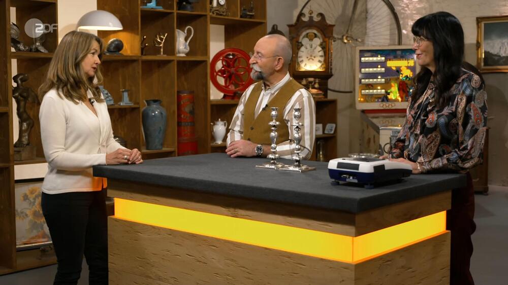 Verkäuferin Tina erhofft sich 800 Euro. Heide Rezepa-Zabel erhöht auf bis zu 1.200 Euro für die beiden Schabbat-Leuchter aus 750er-Silber. Sarah Schreiber ist das schimmernde Duo 1.000 Euro wert.