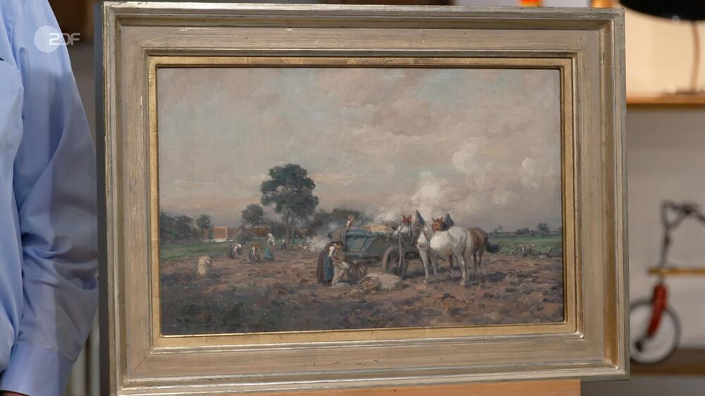 Das Öl-Gemälde von Karl Stuhlmüller zeigt eine Szene aus der Kartoffelernte. Lisa und ihr Onkel Wolfgang erhoffen sich 1.200 Euro. Dr. Friederike Werner bremst auf 1.000. Wolfgang Pauritsch bezahlt genau das: 1.000 Euro.